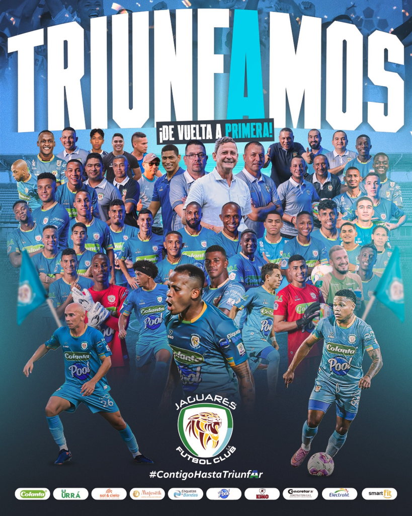 El equipo de fútbol, Jaguares de Córdoba aseguró matemáticamente su ascenso a la categoría A del fútbol colombiano tras empatar 2-2 como visitante contra Cúcuta Deportivo en el estadio General Santander, consolidándose como inalcanzable en la tabla de reclasificación.